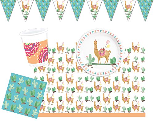 Joli ensemble de fête avec motif lama. Cette box anniversaire conviendra parfaitement pour petits et grands.