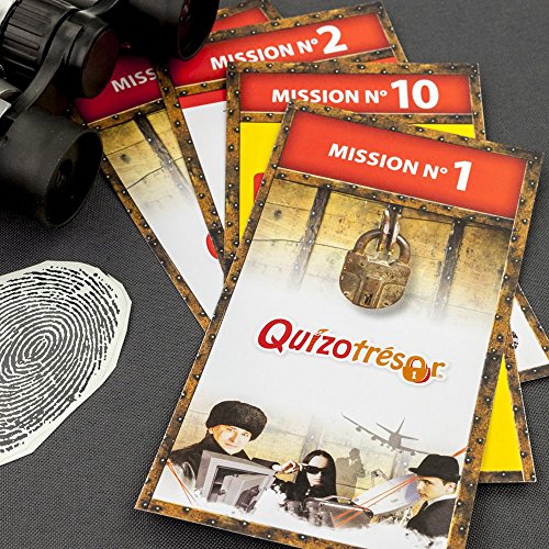 Quizotrésor® est un jeu mi-quiz, mi-chasse-au-trésor, made in France, créé par des parents pour des parents. Transformez-vous en super animateur et organisez vous-même, très simplement, une fête d’anniversaire inoubliable. L’intrigue du Quizotrésor® thème espions : Les services secrets sont sur la piste d’un dangereux malfaiteur et cherchent des renforts pour mener à bien leur enquête. Pour être engagés, les enfants vont devoir effectuer 10 missions à la fois drôles et intelligentes, qui les conduisent tout droit… vers un vrai Trésor ! Une animation d’anniversaire 100% clés en main qui ravira petits et grands. – Convient aux filles comme aux garçons de 6 à 8 ans. – Se joue en extérieur ou intérieur. – Durée estimée de la chasse au trésor : 1h30 (hors accueil des invités, jeux additionnels fournis et goûter d’anniversaire) – Téléchargement gratuit d’accessoires de fête et de signalétique sur le site de la marque.