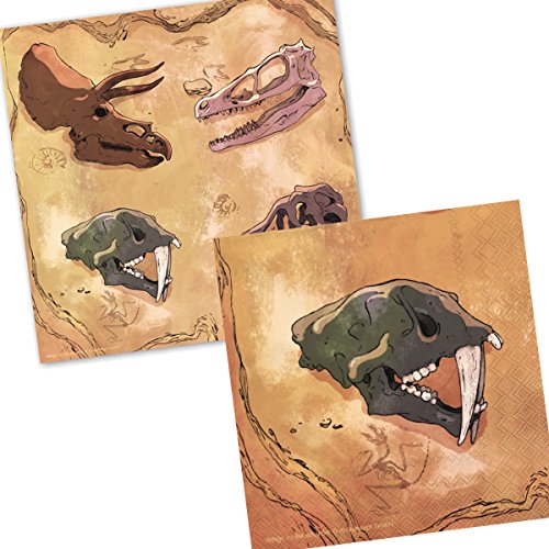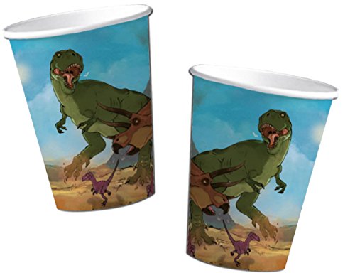 Kit anniversaire de 37 pièces de vaisselle jetable pour anniversaire d’enfants à thème : motif dinosaures (tyrannosaure et tricératops).