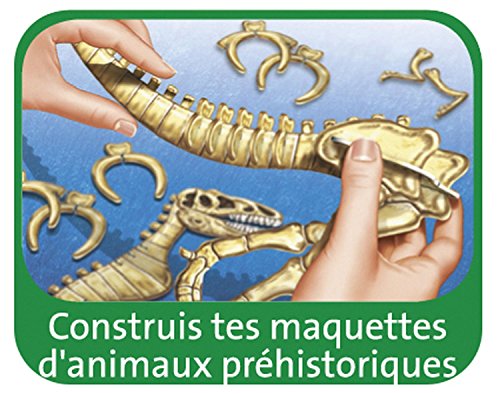 Contenu de la boîte : du sable, de la nourriture pour triops, 1 aquarium, 200g de plâtre, 5 différents moules, 1 Meganeura en carton, 1 Tyrannosaure en carton, un stylet en bois, un volcan en plastique, 1 notice détaillée.
